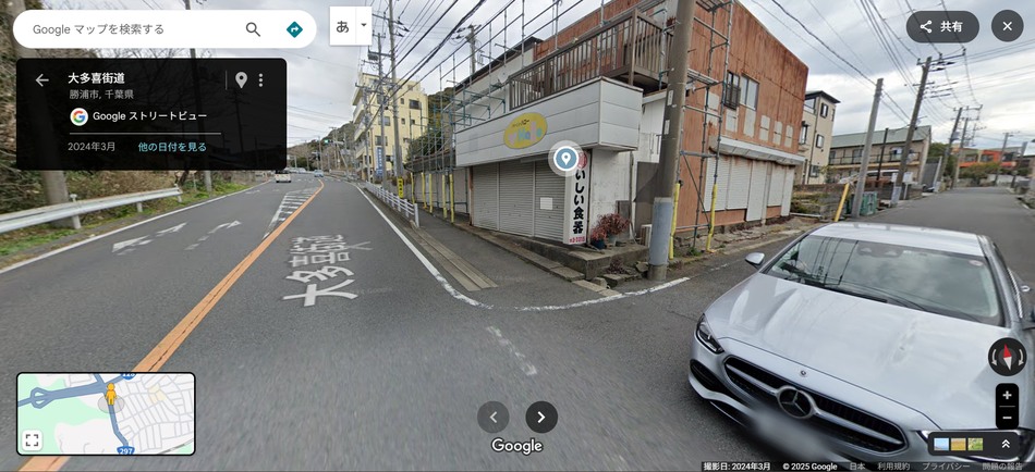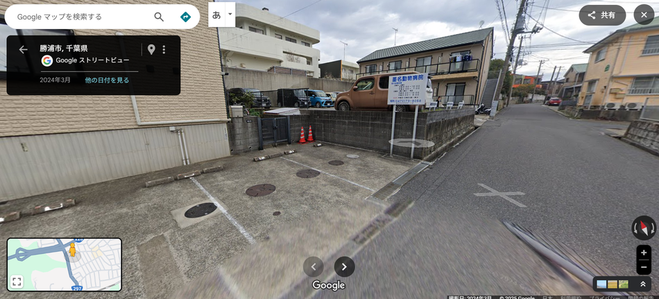 磯野歯科医院の看板のついている場所だけが駐車スペースとなります