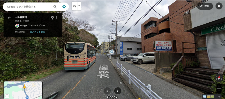 勝浦駅方面から大多喜方面に297号線を上ってくると磯野歯科医院の看板が見えます